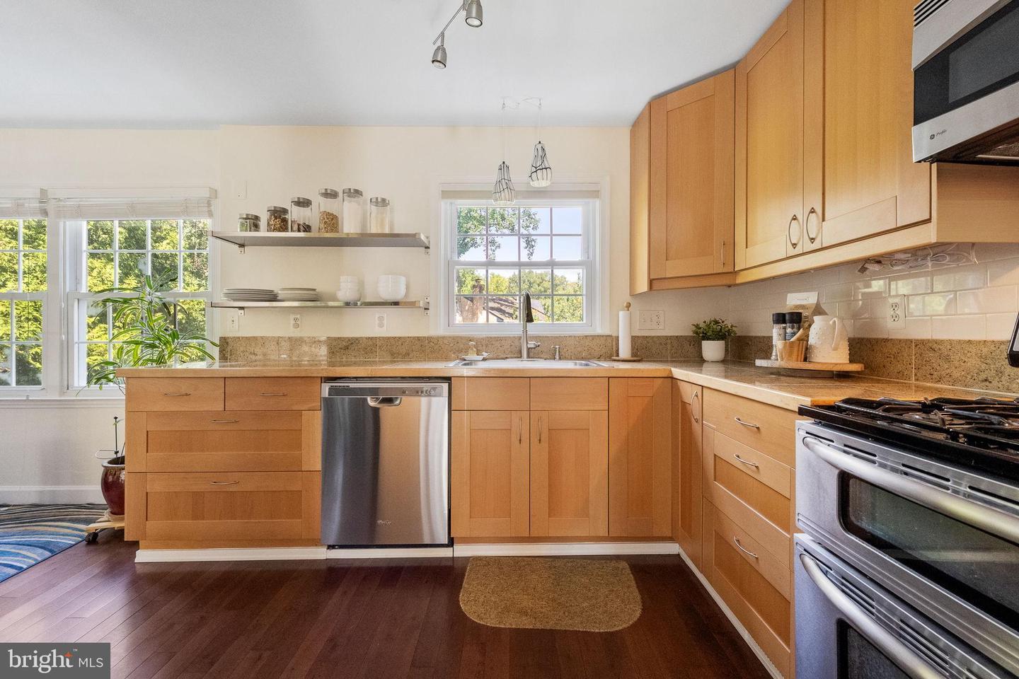 This three-level townhome features 3 bedrooms, 2 full baths, and a main-level powder room across 1,160 square feet. Highlights include a brand new roof (2025), luxury vinyl floors (2021), updated kitchen and bathrooms, a custom steel front door with sidelights, and a whole-home surge protector (2022). The fenced backyard is thoughtfully landscaped with perennials, hostas, and a fruiting fig tree, creating a private retreat for relaxing or entertaining.